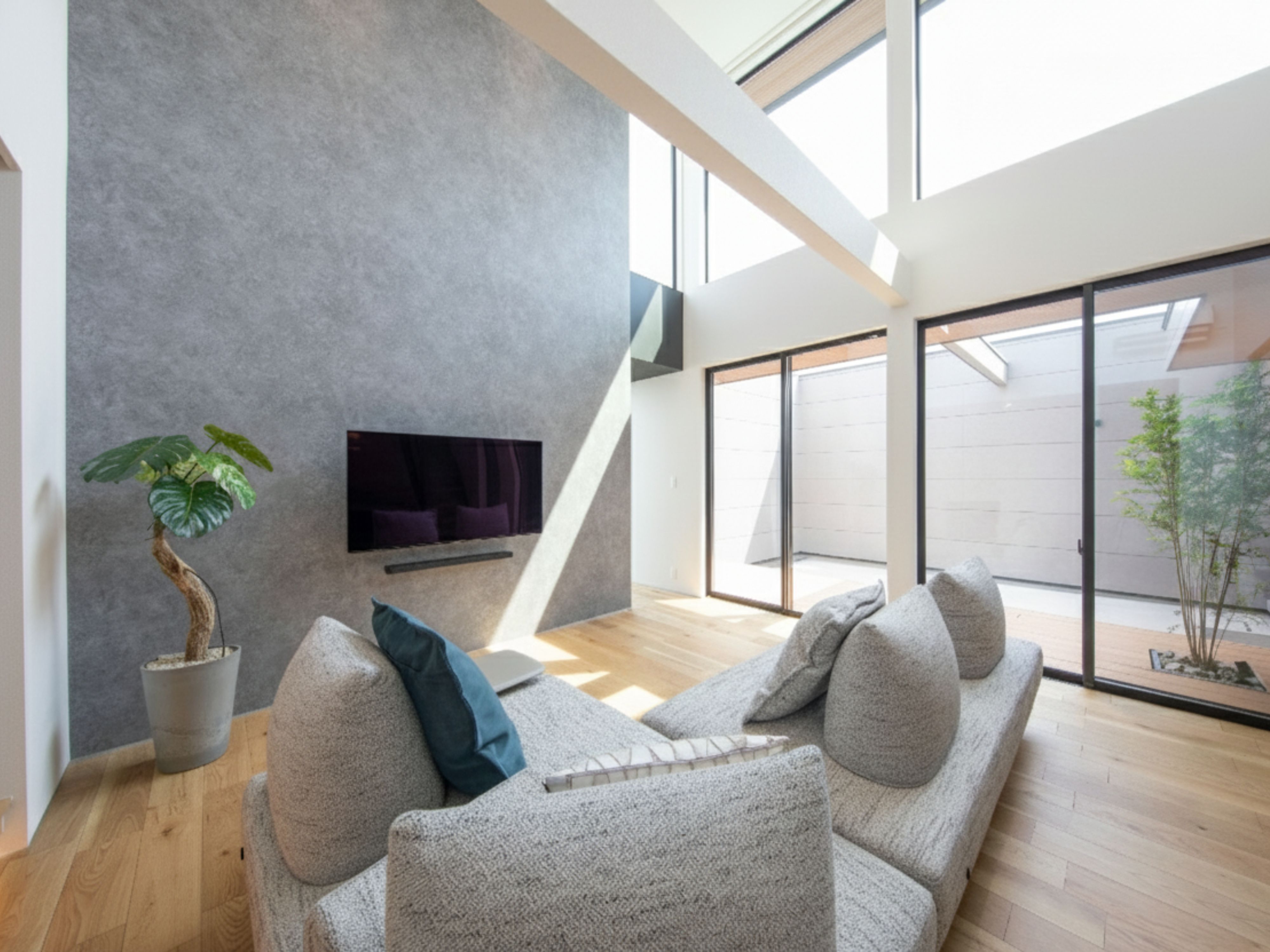 開放的な吹き抜けで繋がる、家族のための上質空間