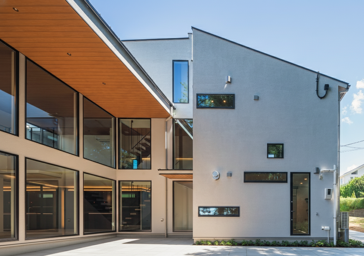 豊かな自然に囲まれたロケーションを最大限に活かすため、開放感とプライバシーを両立させたデザインの邸宅です。