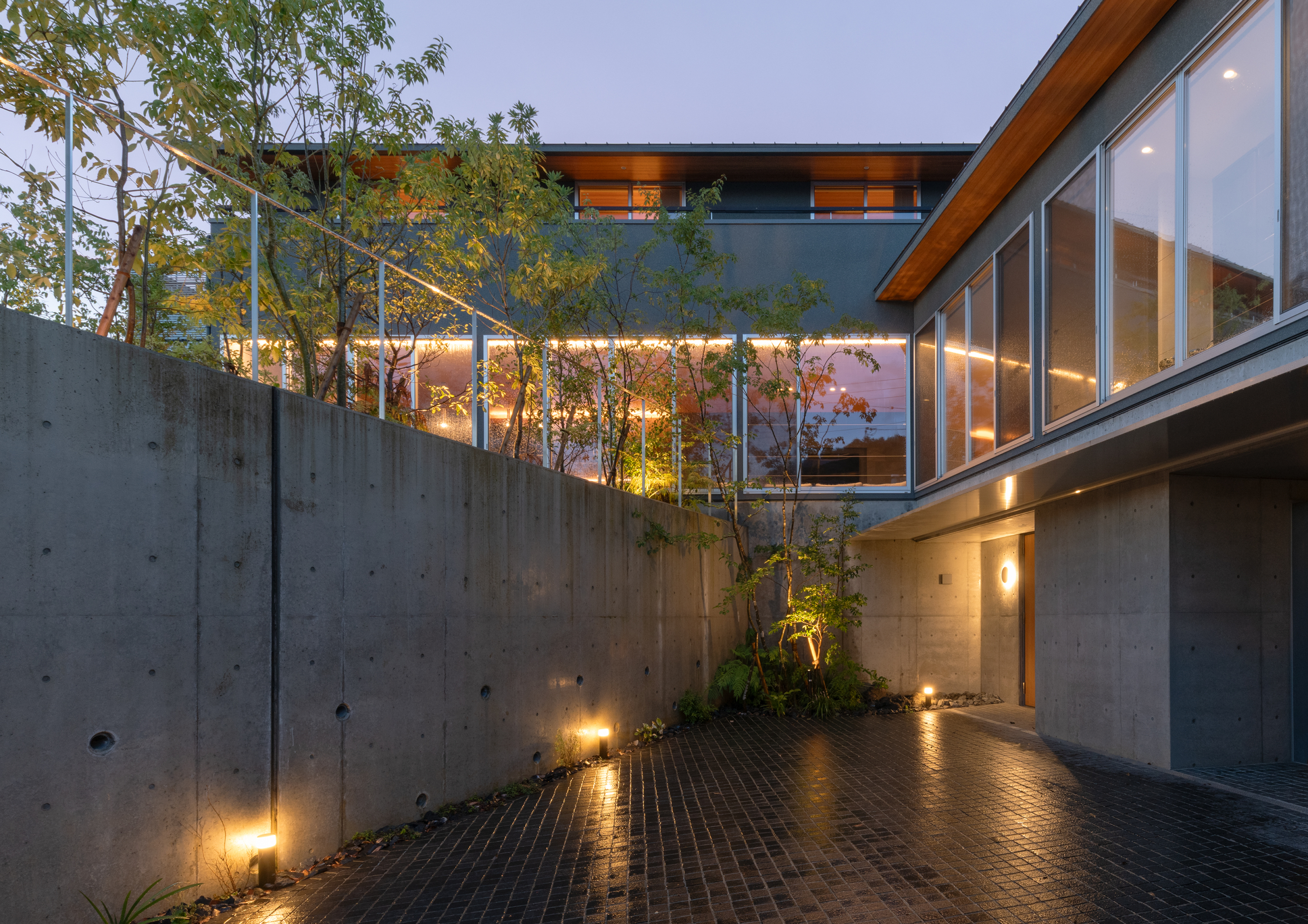 内外の植栽が四季の変化を映し、時を重ねるほどに風景として深みを増していく――そんな「静寂と自然の共存」をテーマとした邸宅です。