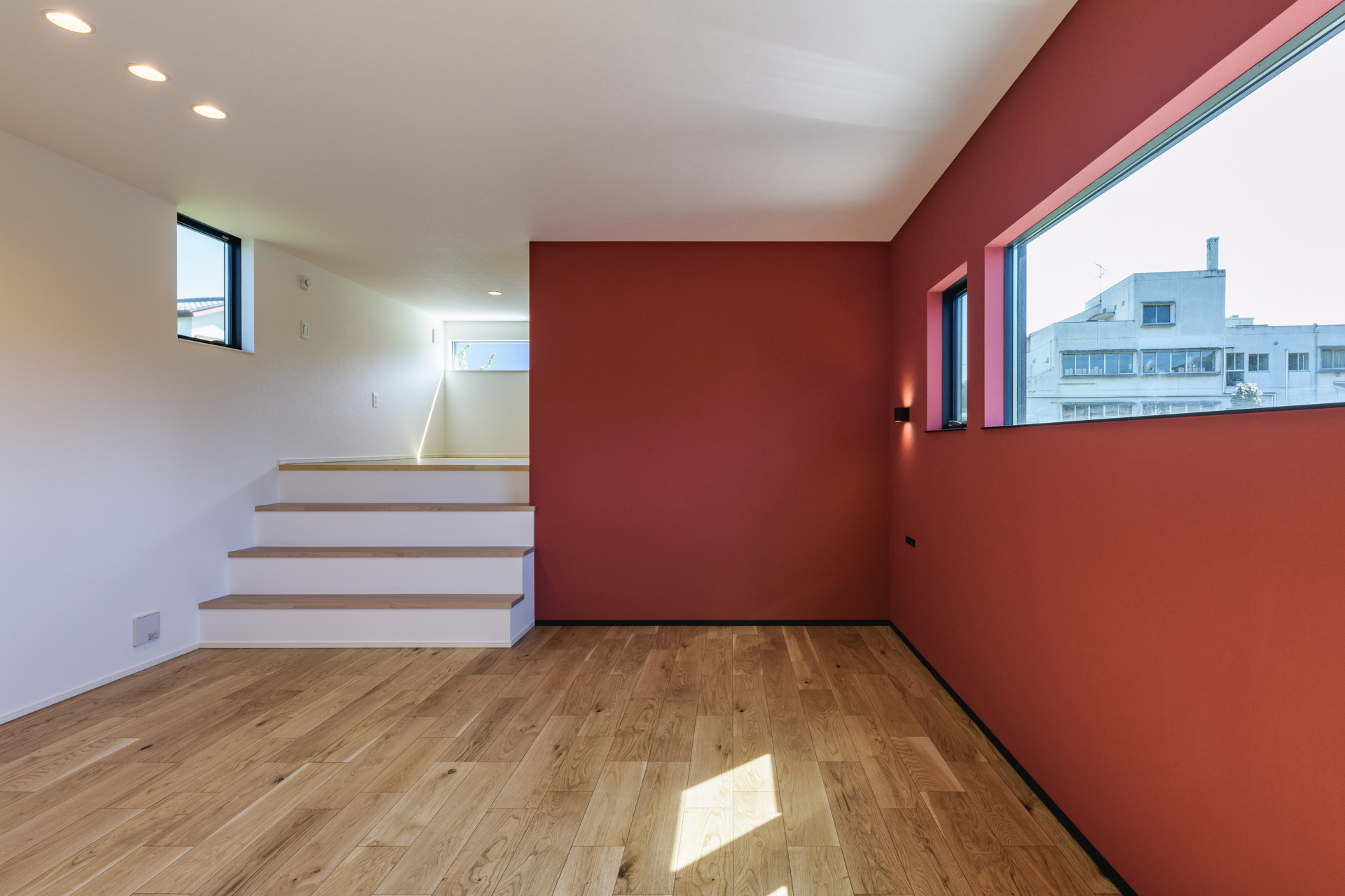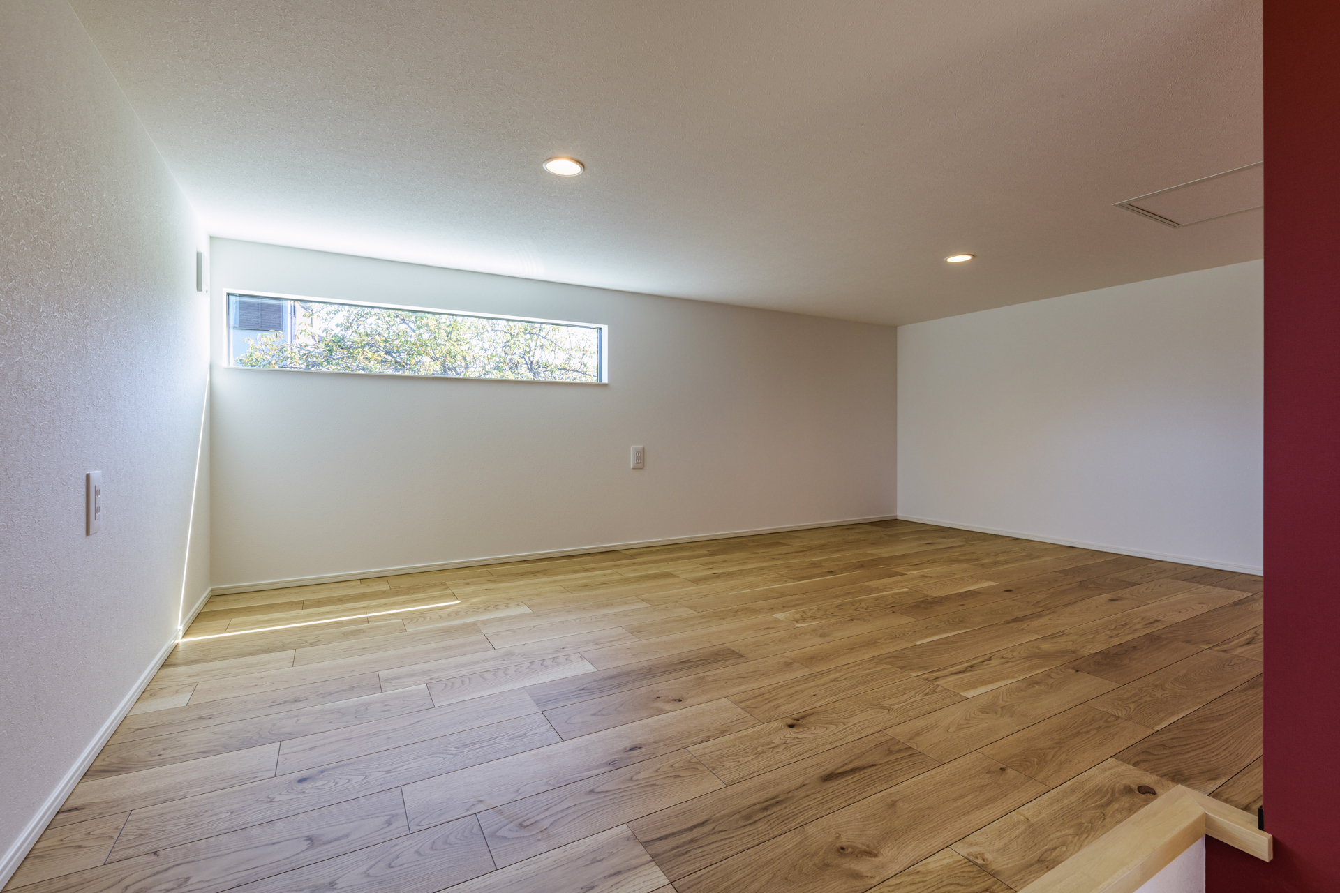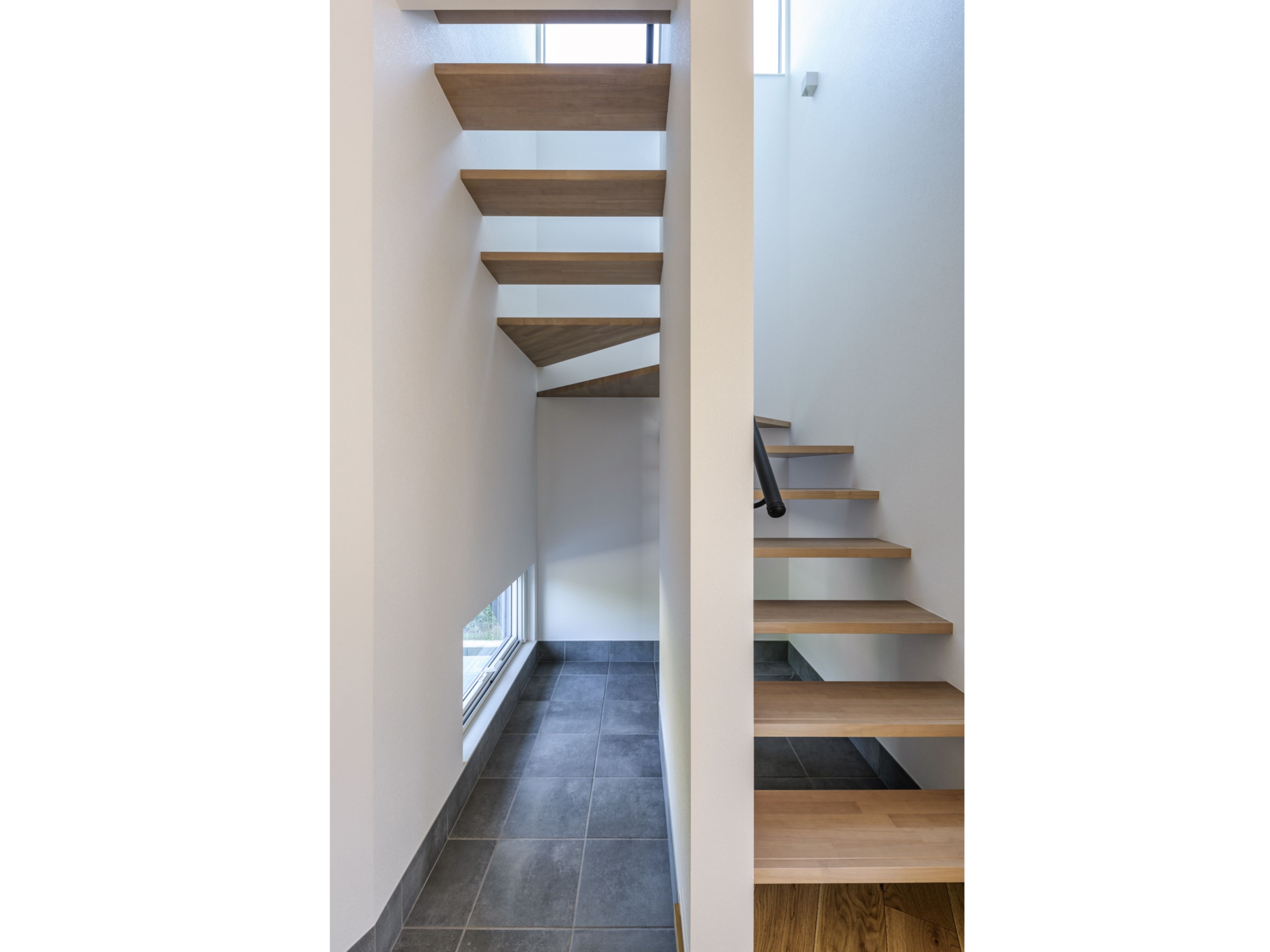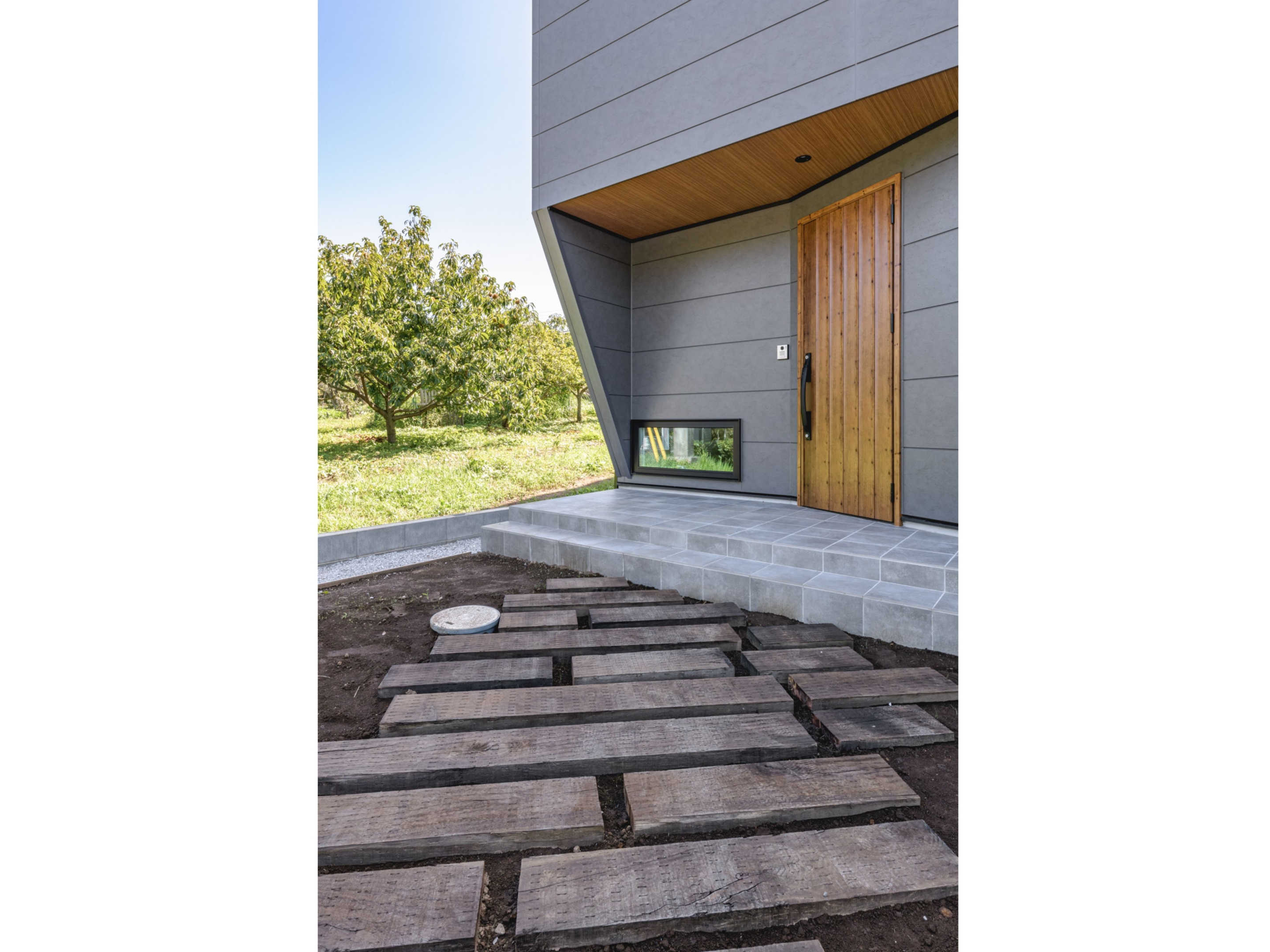 ダークグレーの外壁と木目が調和するモダンな佇まい。一歩室内に入ると、外観とのコントラストが際立つ、明るく開放的な大空間が広がります。ワイドな窓の先には広大なテラスと庭が広がり、LDKと一体化した贅沢な空間を生み出します。石目調のアイランドキッチンやスケルトン階段など、デザイン性と機能性を高めたこだわりのディテールが、日常を豊かに彩る上質な住まいです。