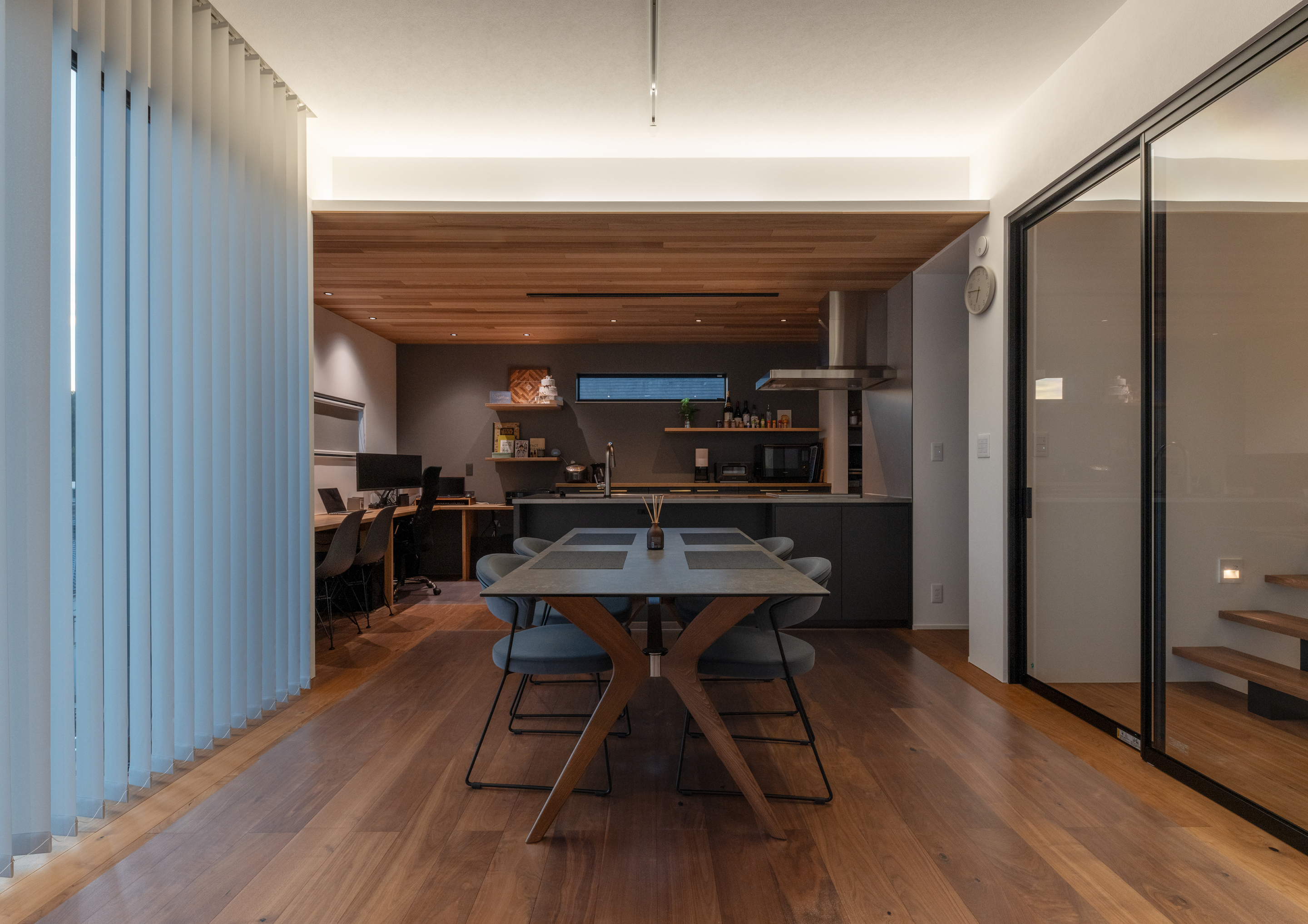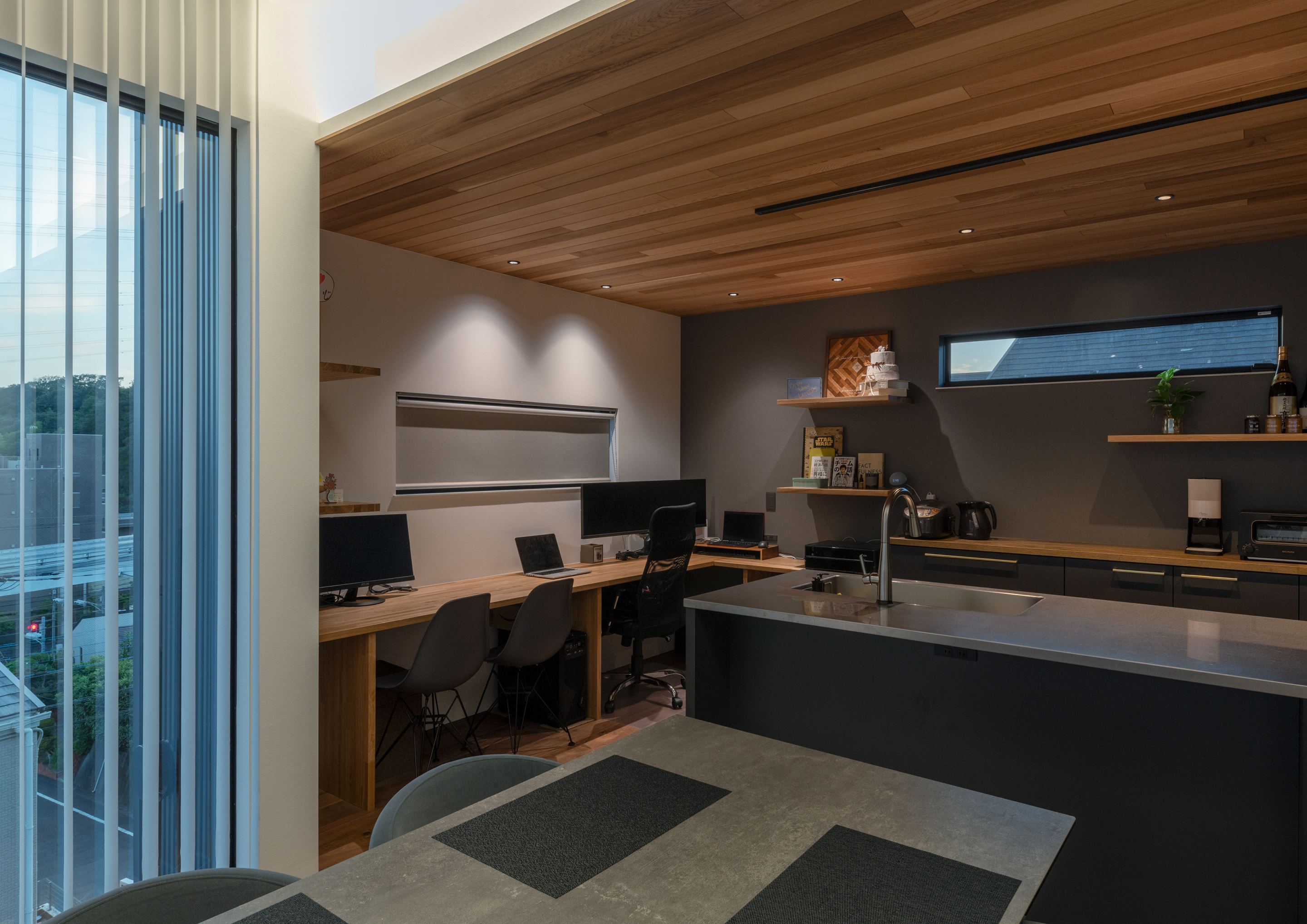 ワークスペースや収納計画も丁寧に設え、デザインと機能が調和した、現代的な邸宅です。